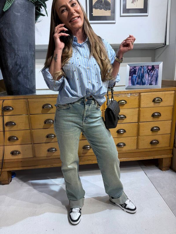 Deze cuff jeans met zandkleurige wassing , heeft een super zavhte touch , heeft veel stretch en valt heel soepel.